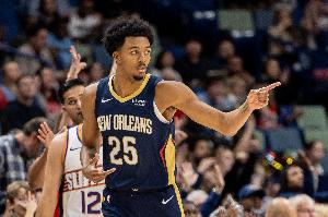 本场比赛,鹈鹕球员墨菲表现出色,进攻端十分高效,首节就拿到14分,首发出战34分钟,投篮12中8,三分球8中5,罚球8中7,拿下28分7篮板3助攻3抢断的数据,正负值+18。